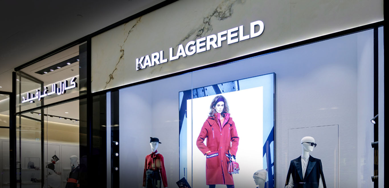 A true favorite: for the iconic Karl Lagerfeld brand, we supply both indoor and outdoor signage worldwide, including EMEA, South Africa, and the Middle and Near East.
